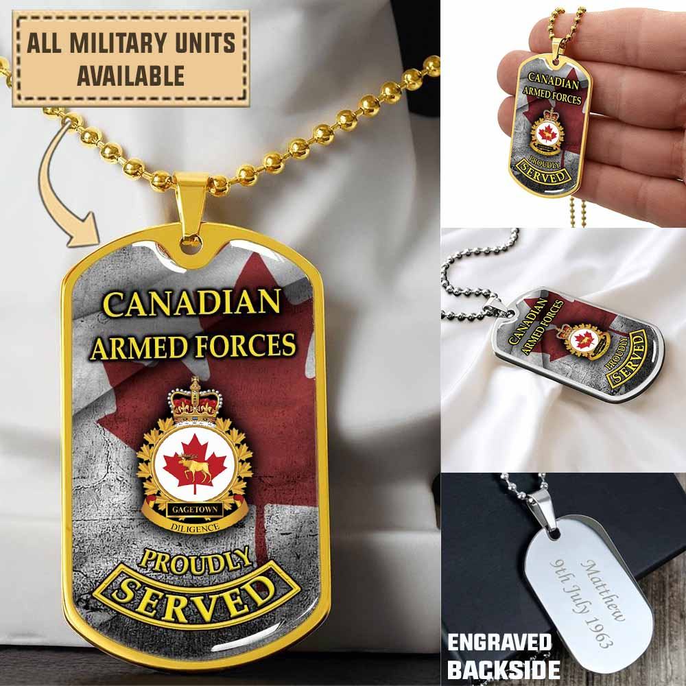 Show your pride with our CFB Gagetown Canadian Forces Base Gagetown CAF_Dogtag honoring the service, sacrifice, and contributions. Wear the emblem with pride, symbolizing the unwavering dedication and integrity of the men and women who serve in this distinguished force.