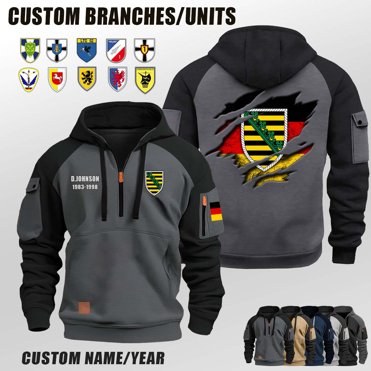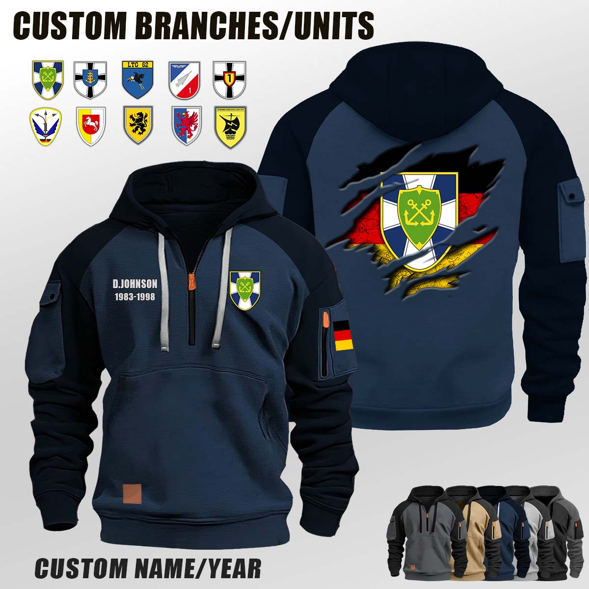 Custom DE Units_Flag V2 Halfzip Hoodie