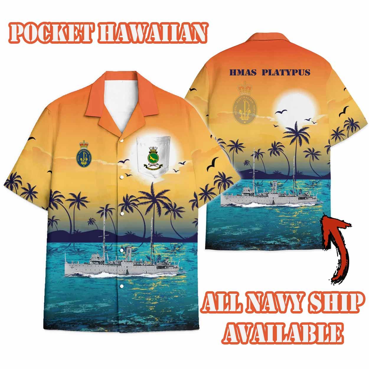 Celebrating your military service with our HMAS Platypus_Sunset Hawaiian Shirt