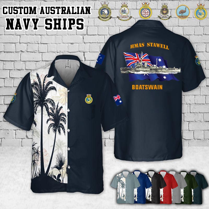 Stay Cool and Comfort with our HMAS Stawell_Flag Pocket Hawaiian Shirt