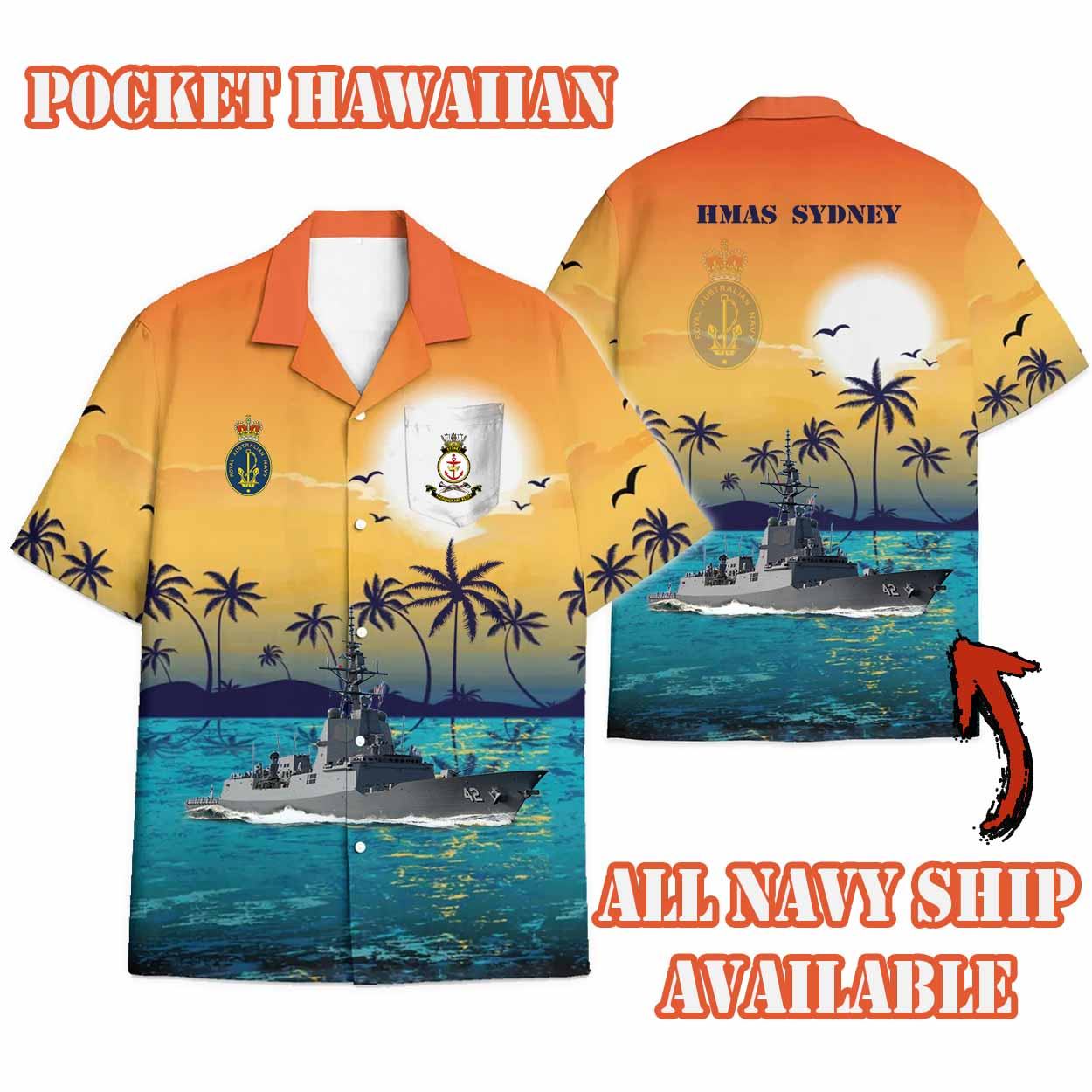 Celebrating your military service with our HMAS Sydney_Sunset Hawaiian Shirt