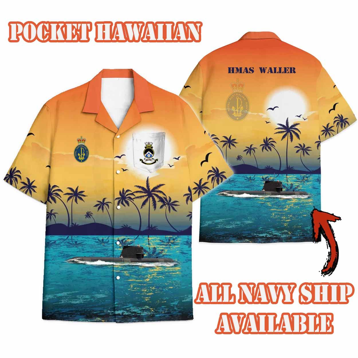 Celebrating your military service with our HMAS Waller_Sunset Hawaiian Shirt