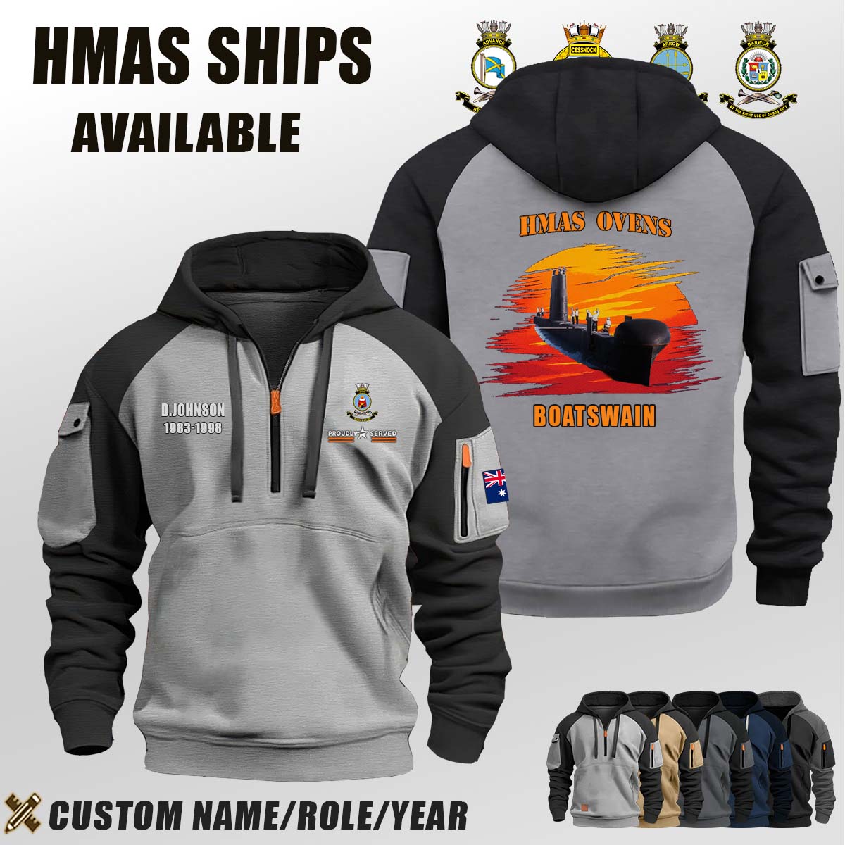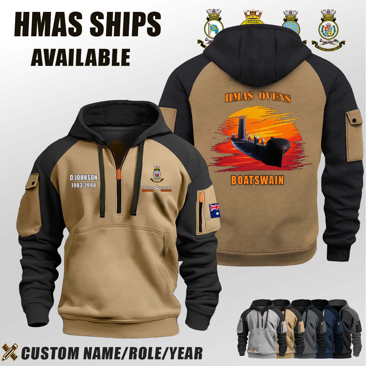 Introducing HMAS Ovens_Sunset Halfzip Hoodie tailored specifically for men who appreciate both warmth and fashion.