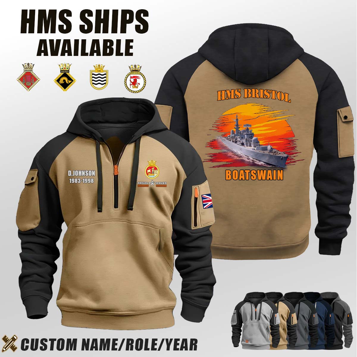 Introducing HMS Bristol (D23)_Sunset Halfzip Hoodie tailored specifically for men who appreciate both warmth and fashion.